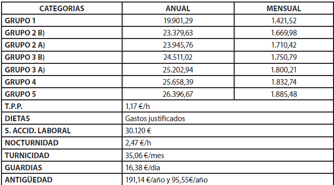Percibirán por cada hora efectiva de trabajo realizado el importe establecido en la tabla salarial recogida en el convenio nacional para cada año, computándose las fracciones de hora como completas a efectos de abono de la cuantía indicada por hora.