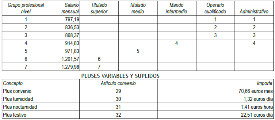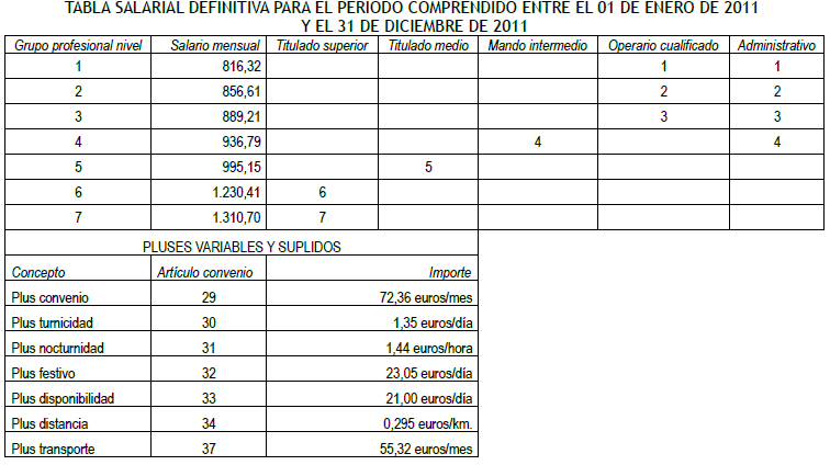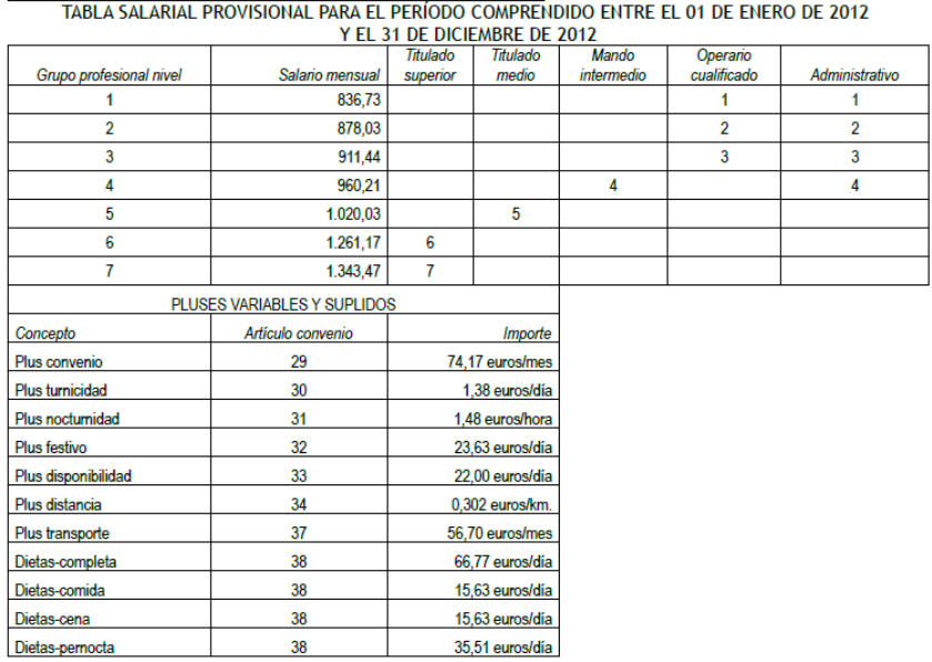 2) Se acuerda un incremento de 1,5% con efectos 01 de enero de 2017 de la tabla salarial definitiva 2012. (BOP 18 de marzo de 2013).