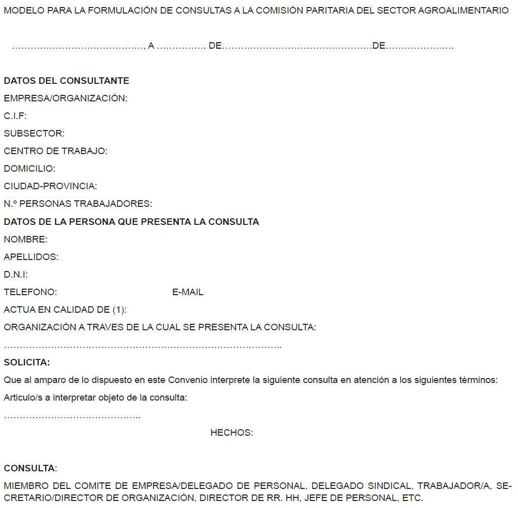 ANEXO III.- Modelo consulta comisión paritaria.