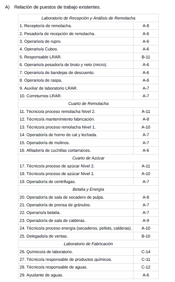 – Mandos intermedios de azucareras con dos servicios unificados (Mecánico y Eléctrico, Mecánico y Automatismos, Mecánico y Contramaestre, Eléctrico y Automatismos, Eléctrico y Contramaestre, Automatismos y Contramaestre).