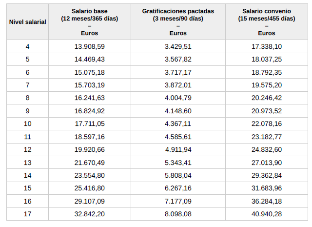 ANEXO 2.- Tabla de salarios convenio para el año 2024 Para personas trabajadoras fijas sin antigüedad
