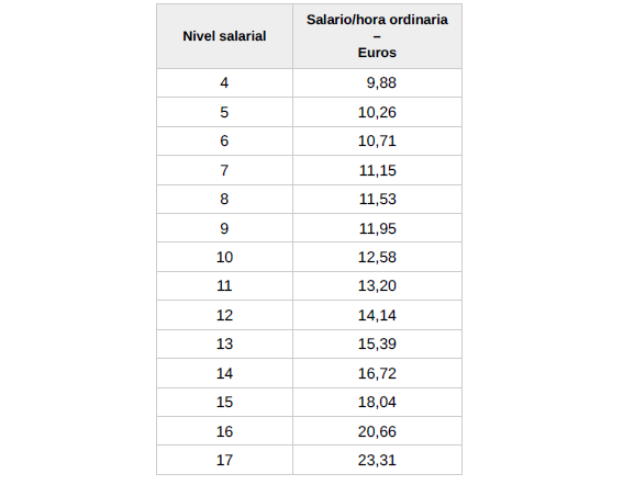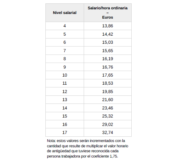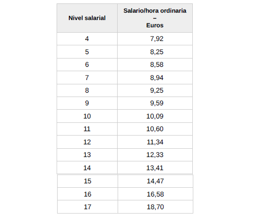 – Plus de domingos y plus festivo: 2,55 euros/hora