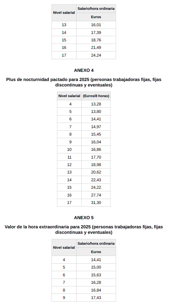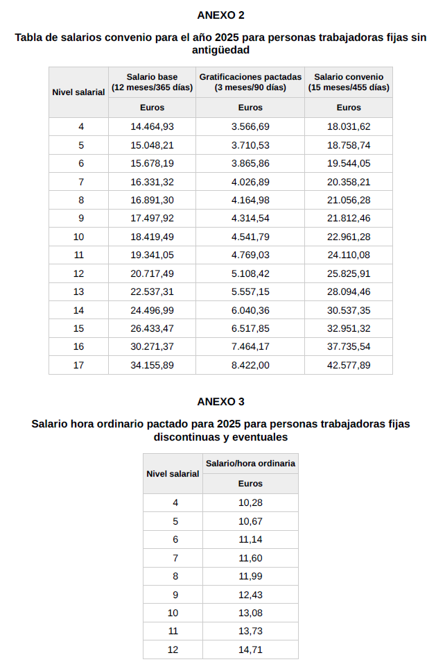 3. Aprobar las nuevas tablas correspondientes al año 2025 que se adjuntan a la presenta acta, firmada por las partes.