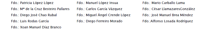 E en proba de conformidade, asinan a presente Acta as persoas ao marxe relacionadas en lugar e data indicados no encabezamento.