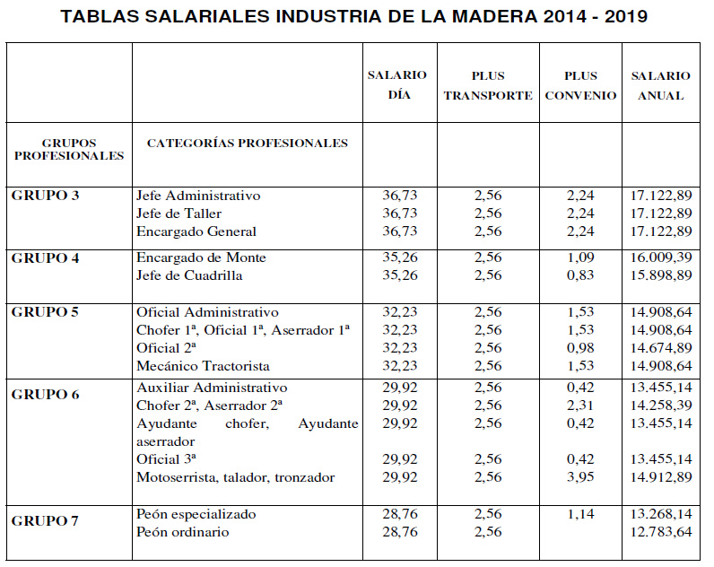 Para los años 2014 a 2020 se aplicaran los salarios de las tablas salariales vigentes en el año 2013. Las categorías que se encontrasen por debajo del salario mínimo interprofesional se adaptarán al mismo.