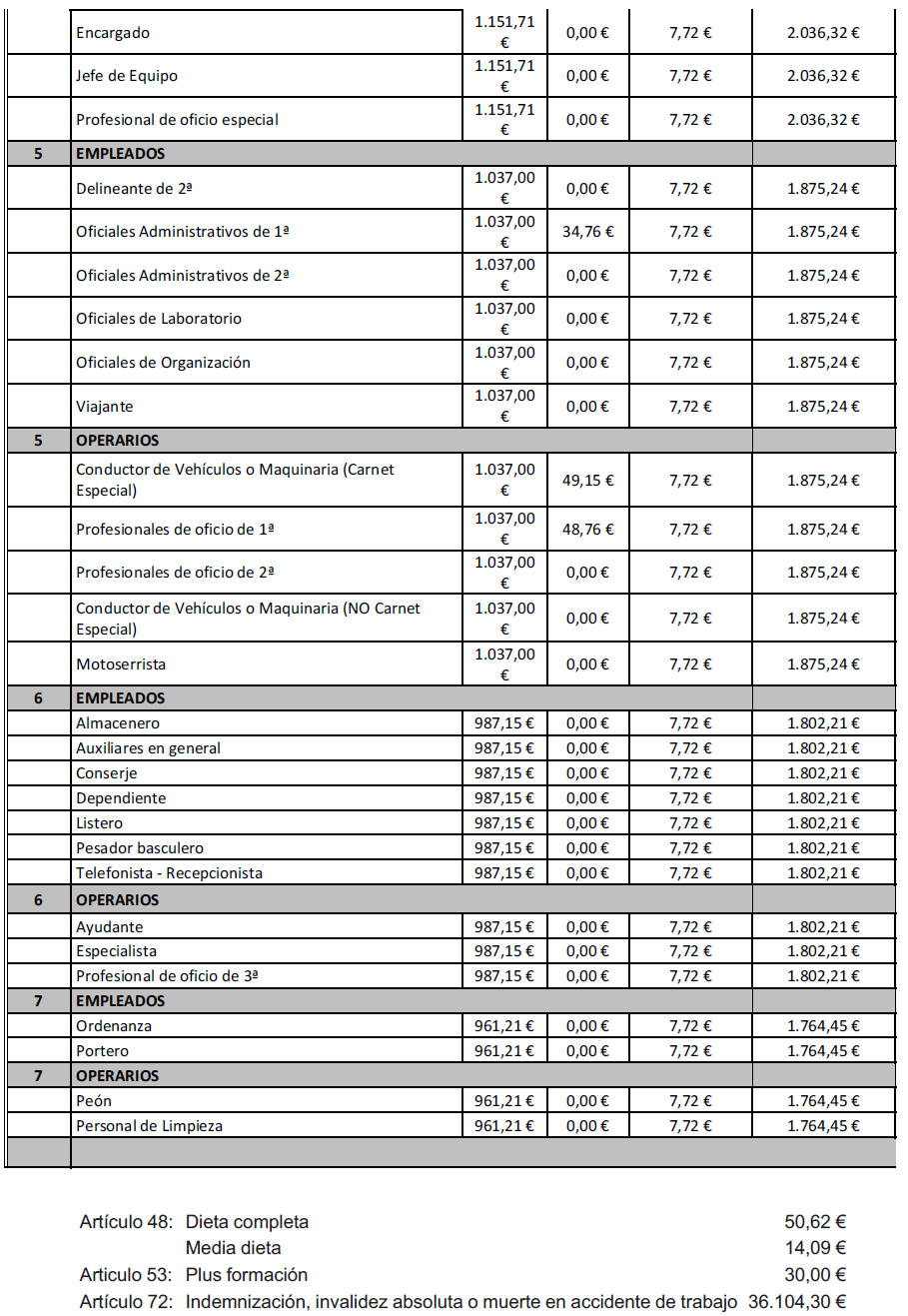 Profesionales de Oficio de 1ª.