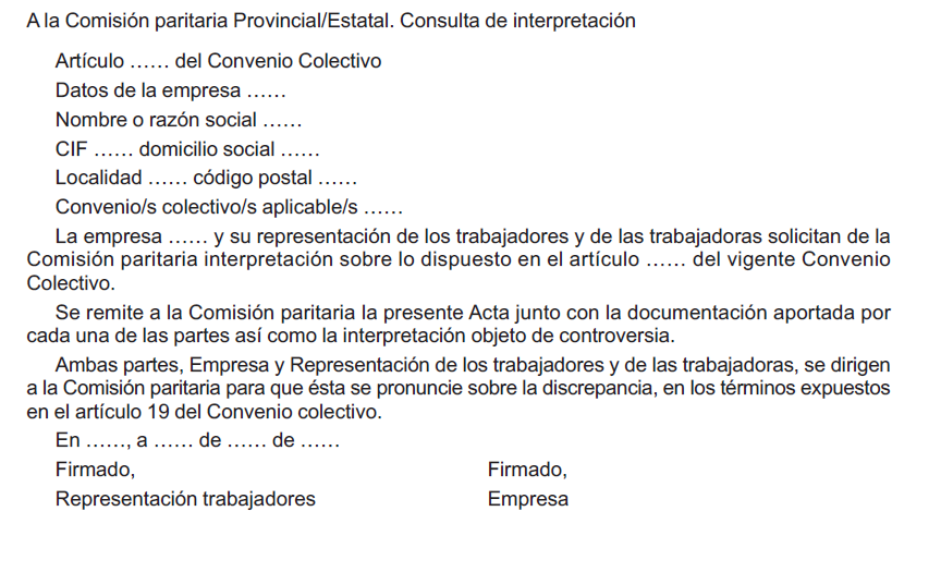 Se establece que las cuestiones propias de su competencia que se promuevan ante la Comisión paritaria adoptarán la forma escrita, y su contenido será el suficiente para que pueda examinar y analizar el problema con el necesario conocimiento de causa, debiendo tener como contenido obligatorio: