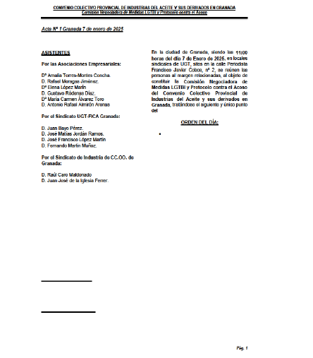 El presente Convenio ha sido negociado y firmado por Asociación Provincial de Almazaras de Granada, INFAOLIVA Granada, Asociación de Cooperativas de Granada (FAECA), la Federación de Industria Construcción y Agro de UGTGranada FICA-UGT-GRANADA. Y La Federación de Industria de CC.OO.