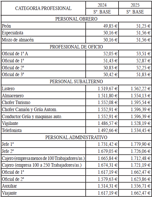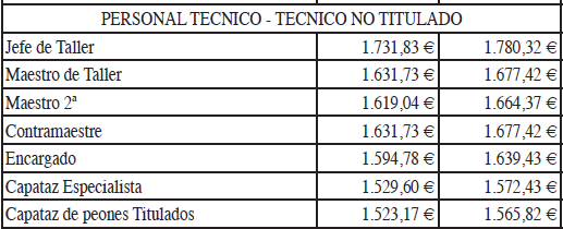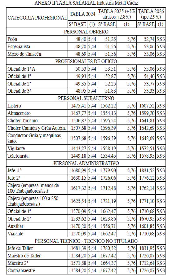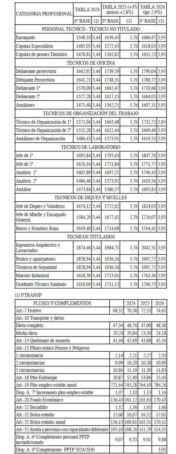 Se adjunta tabla salarial correspondientes al año 2026, así como los distintos conceptos económicos del Convenio Colectivo con sus nuevas cuantías.