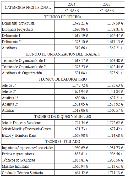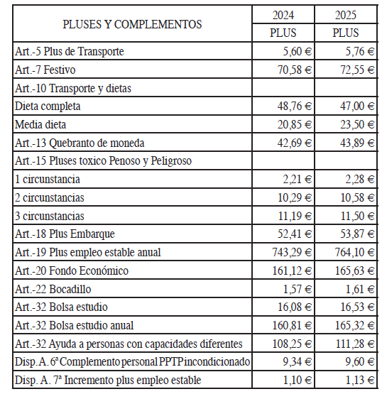 Los atrasos de la subida efectuada en la tabla de 2025 serán del 2,8% desde enero de 2025 hasta el momento de aplicación de la tabla actualizada.