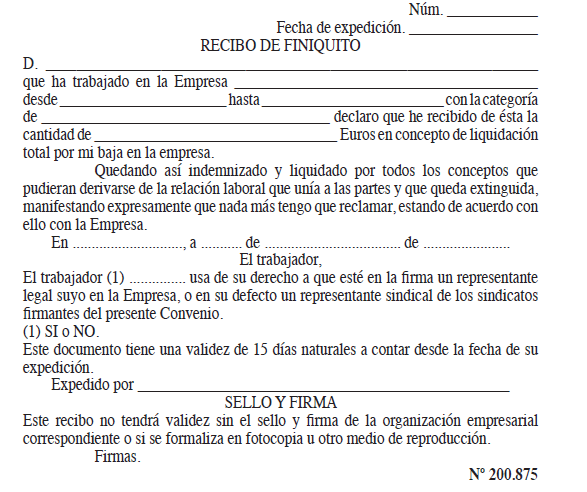 ANEXO III.- MODELO DE RECIBO DE FINIQUITO DE LA RELACION LABORAL.