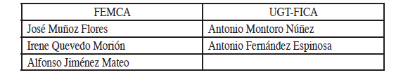 1. La Comisión de Prevención de Riesgos Laborales estará integrada por un máximo de dos miembros por cada parte, dos por FEMCA y dos por el sindicato UGT- FICA.