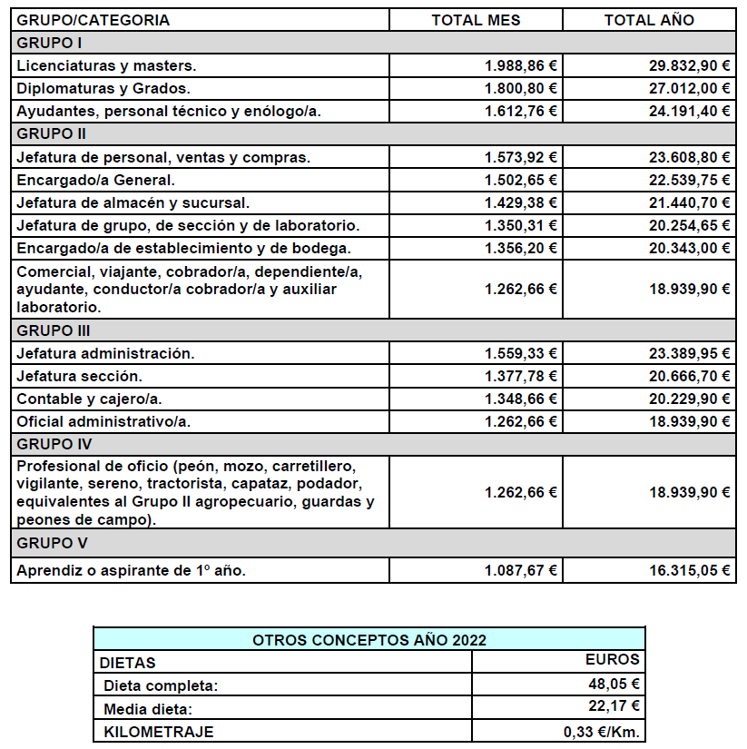 Para el año 2022, el incremento salarial será de un 5,5%. Las tablas salariales correspondientes a este año figuran como anexo I en este convenio. no se realizará revisión salarial.