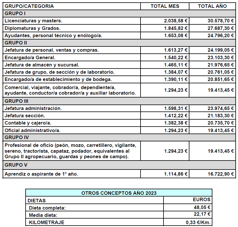 Para el año 2023, el incremento salarial será de un 2,5%. Las tablas salariales correspondientes a este año figuran como anexo II en este convenio.