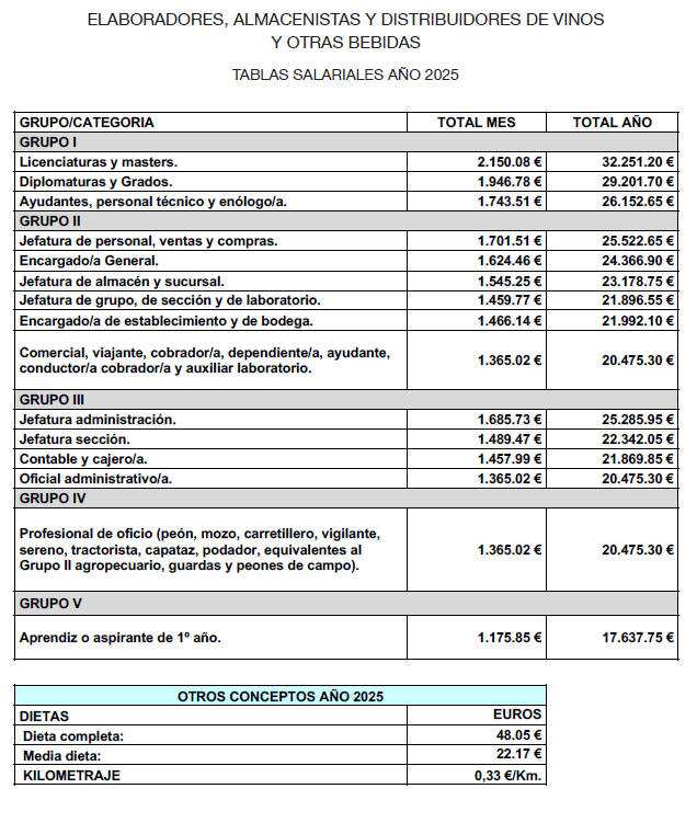 Resolución de 27 de enero de 2025 de la Oficina Territorial de Trabajo de Burgos, por la que se dispone la inscripción en el registro de convenios y acuerdos colectivos de trabajo y la publicación en el Boletín Oficial de la Provincia de Burgos de las tablas salariales para el año 2024 revisadas y las correspondientes al año 2025 del convenio colectivo para la industria elaboradora, almacenistas y distribuidores de vinos, cervezas, licores y otras bebidas espirituosas de la provincia de Burgos. (C.C. 09000395011981).