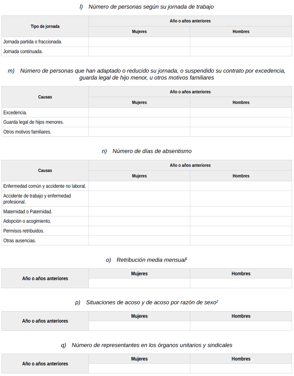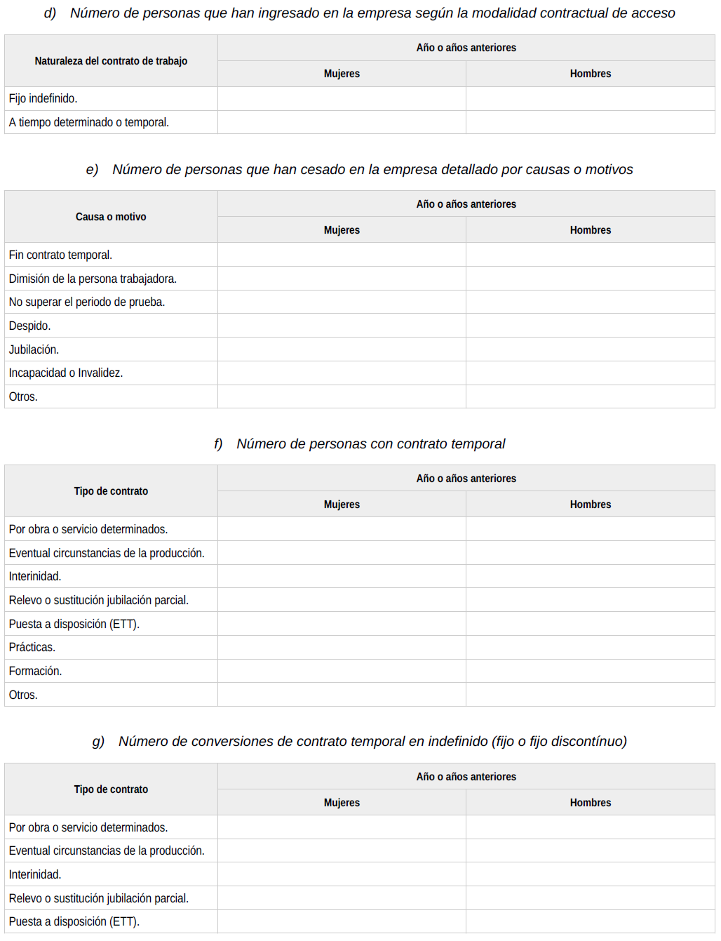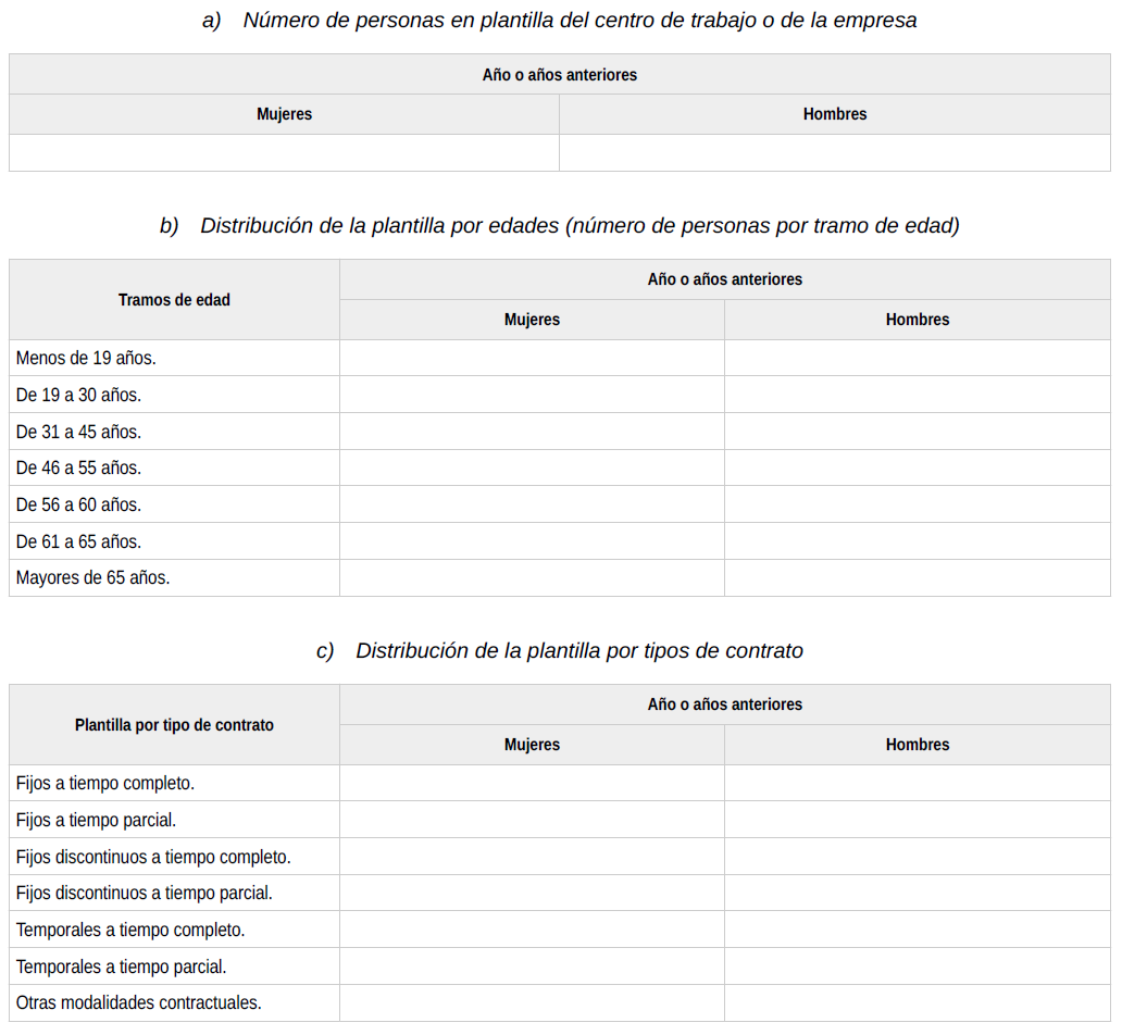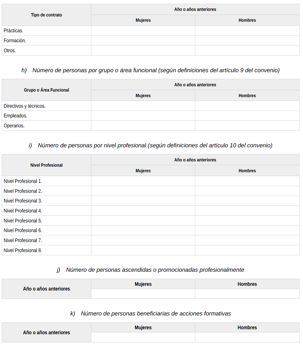 Se ha de publicar al final del texto las siguientes tablas: