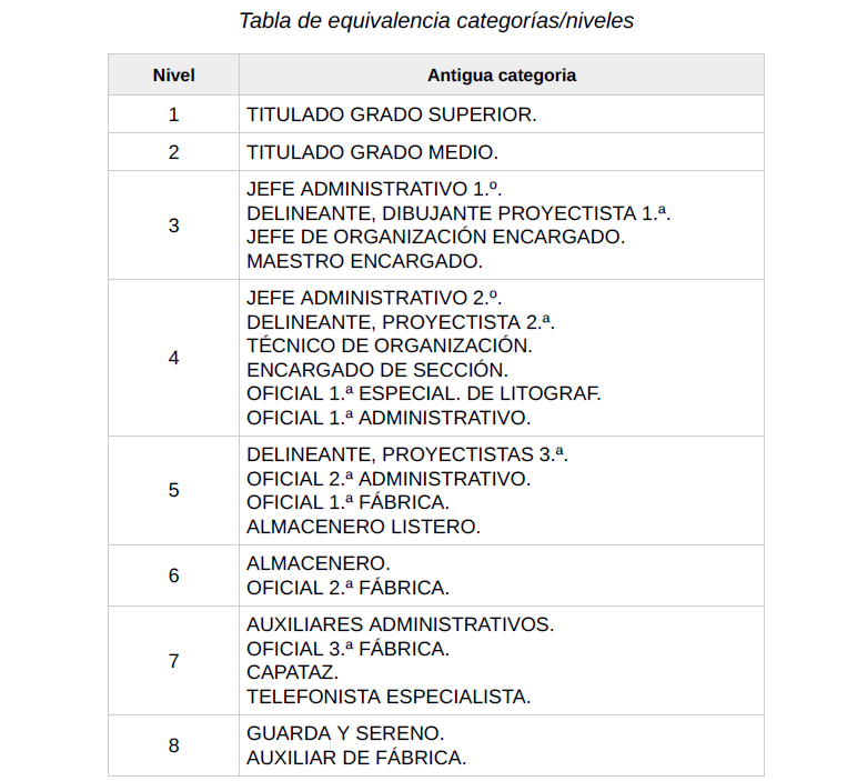7. Todas las personas trabajadoras serán adscritas a un determinado grupo y a un nivel. Ambas circunstancias definirán su posición en el esquema organizativo de cada empresa.