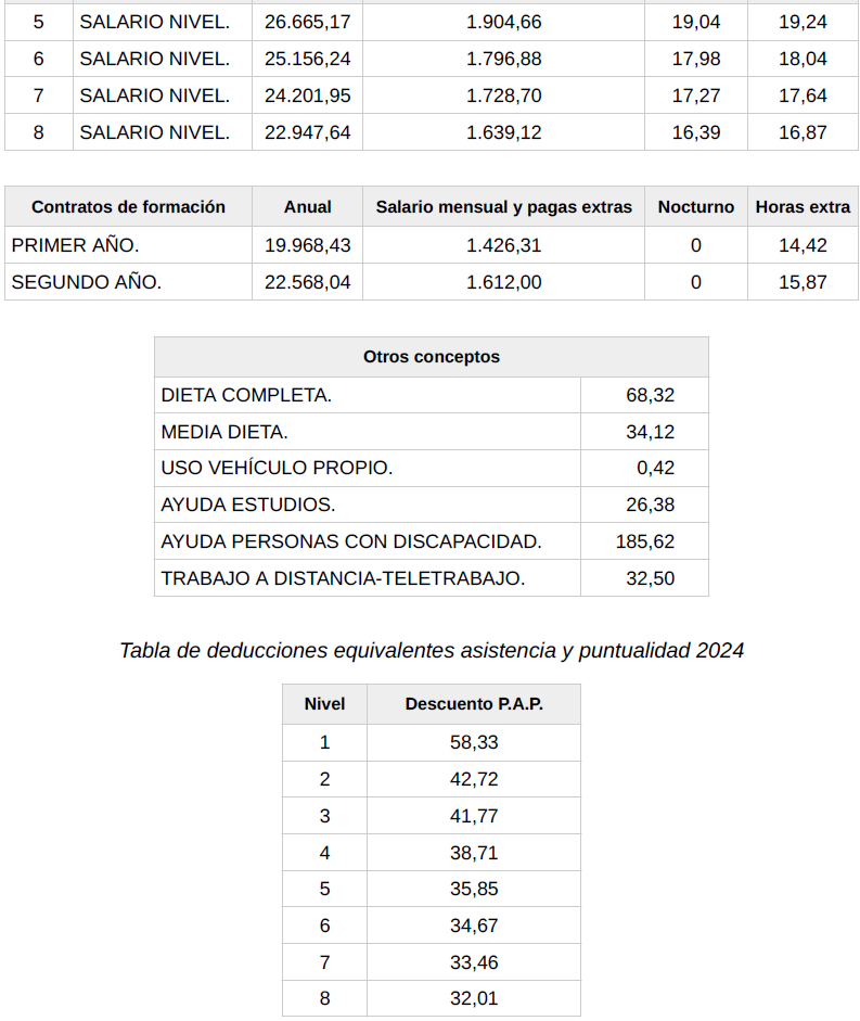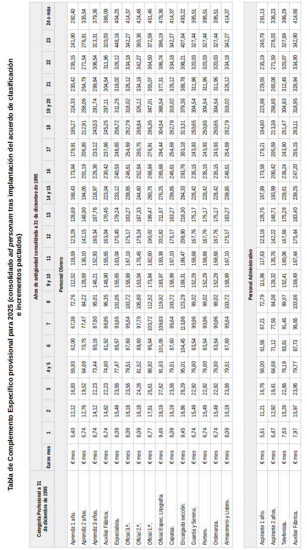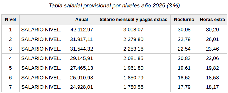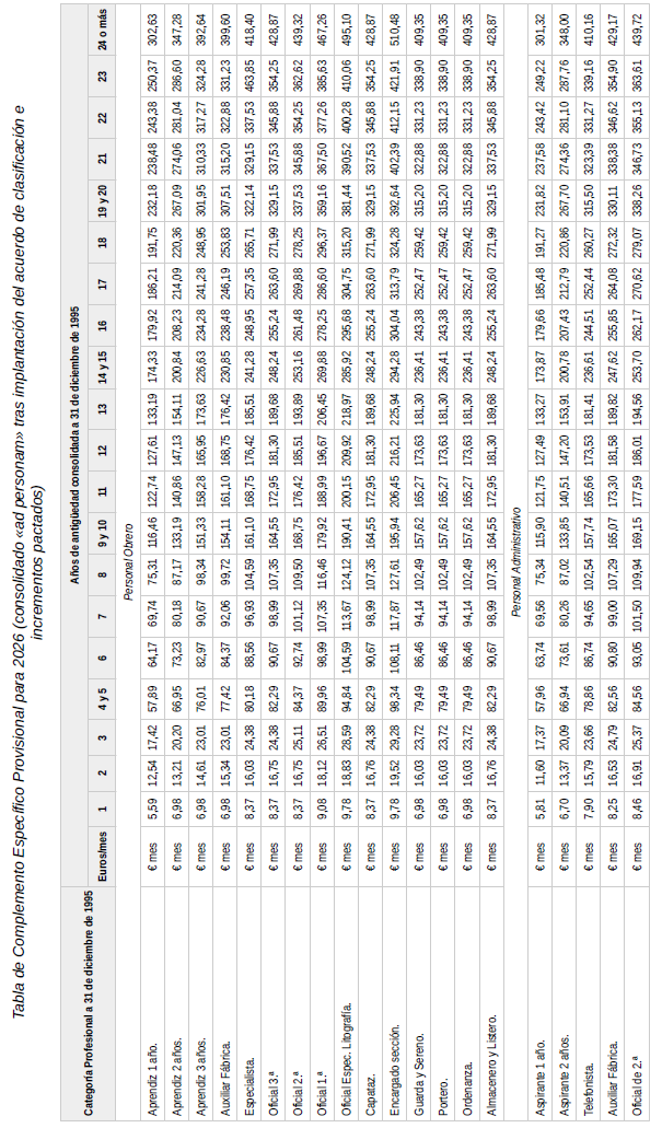 Como anexo a esta acta se firman las correspondientes Tablas Salariales provisionales del año 2026, a aplicar a partir del 1 de enero de 2026.