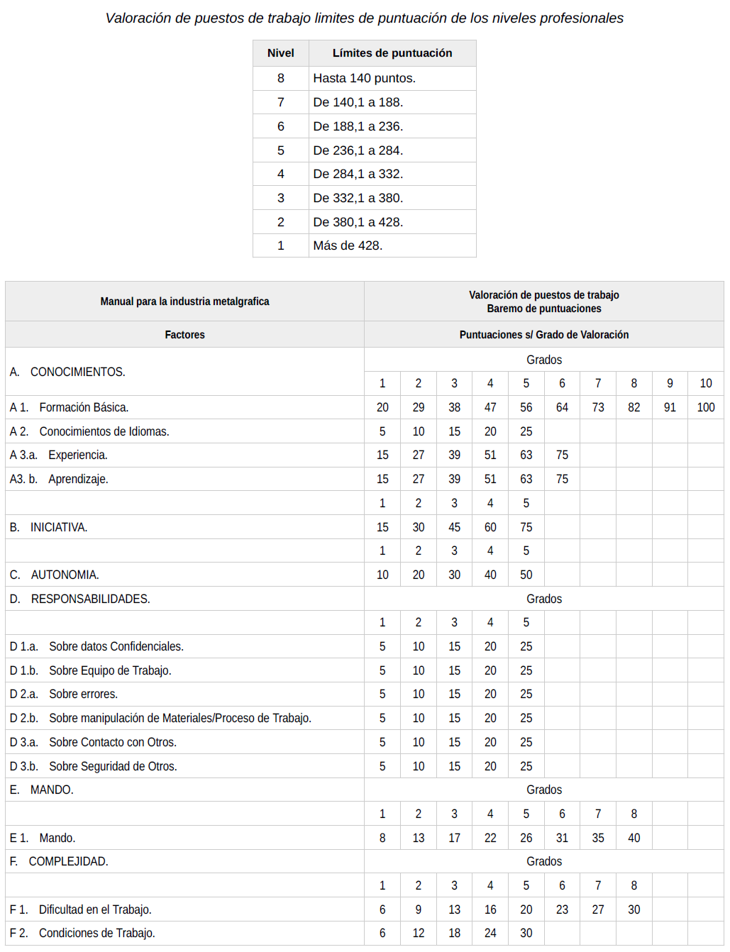 5. El encuadramiento de cada puesto de trabajo al respectivo grupo y correspondiente nivel, se realizará teniendo presente los factores de: conocimientos, iniciativa, autonomía, experiencia, responsabilidad, mando y complejidad. Todos estos factores aparecen como condicionantes para la pertenencia a un grupo y nivel determinado.