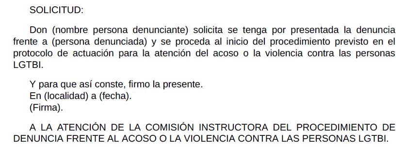 – Si de la prueba practicada no se apreciasen indicios de acoso o violencia contra las personas LGTBI, la comisión hará constar en el acta que de la prueba expresamente practicada que no cabe apreciar la concurrencia de estas conductas.