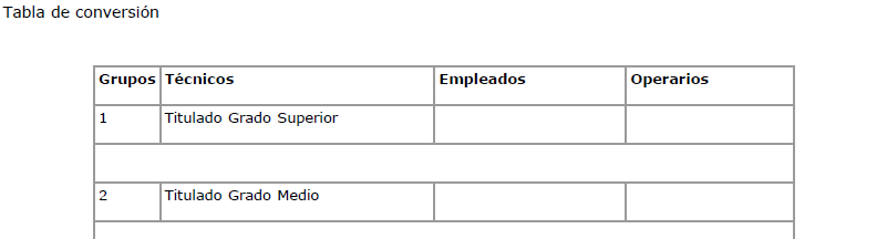 18.5.- Los grupos profesionales serán los indicados en el anexo 0, que incluye la tabla de conversión de encuadre y la descripción de funciones.