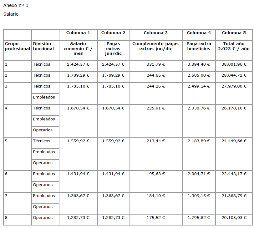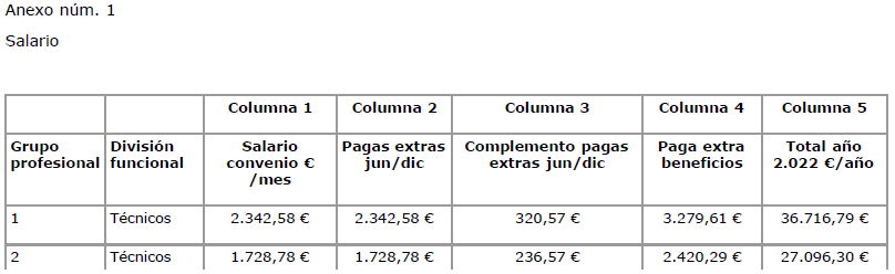 De conformidad con lo anteriormente expuesto, se procede a actualizar las tablas y anexos salariales: