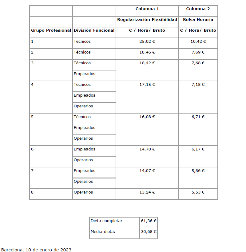 Las tablas y anexo son firmadas por ambas representaciones en catalán y castellano, con entrega al secretario del convenio, para que las adjunte al expediente, con la instrucción de dar comienzo a los trámites para su registro y publicación.