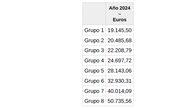 Y así, las tablas del año 2025 quedan como a continuación se expone: