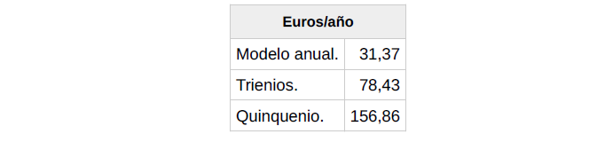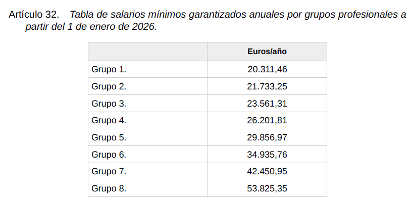 Y así, las tablas del año 2026 quedan como a continuación se expone: