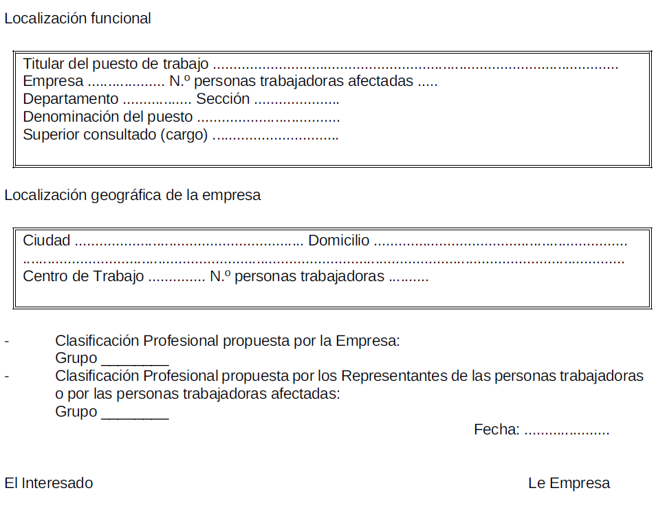 ANEXO I.- Modelo a rellenar para consultas de clasificación profesional a la Comisión Mixta del Convenio General de la Industria Química