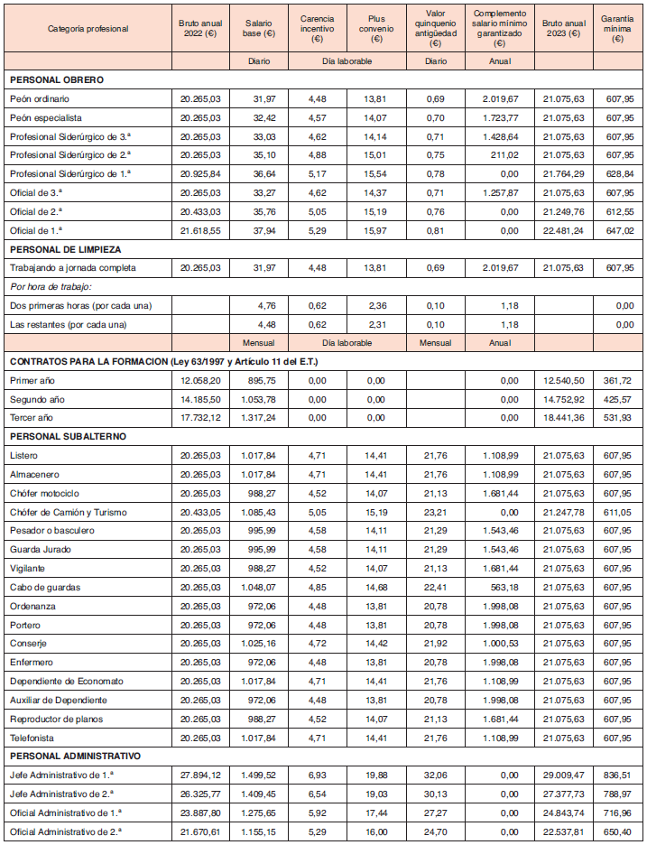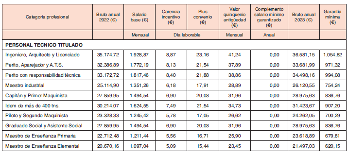 – Incremento salarial 2023: Subida fija del 4% sobre las tablas salariales de 2022, con efectos desde el 1 de enero de 2023.