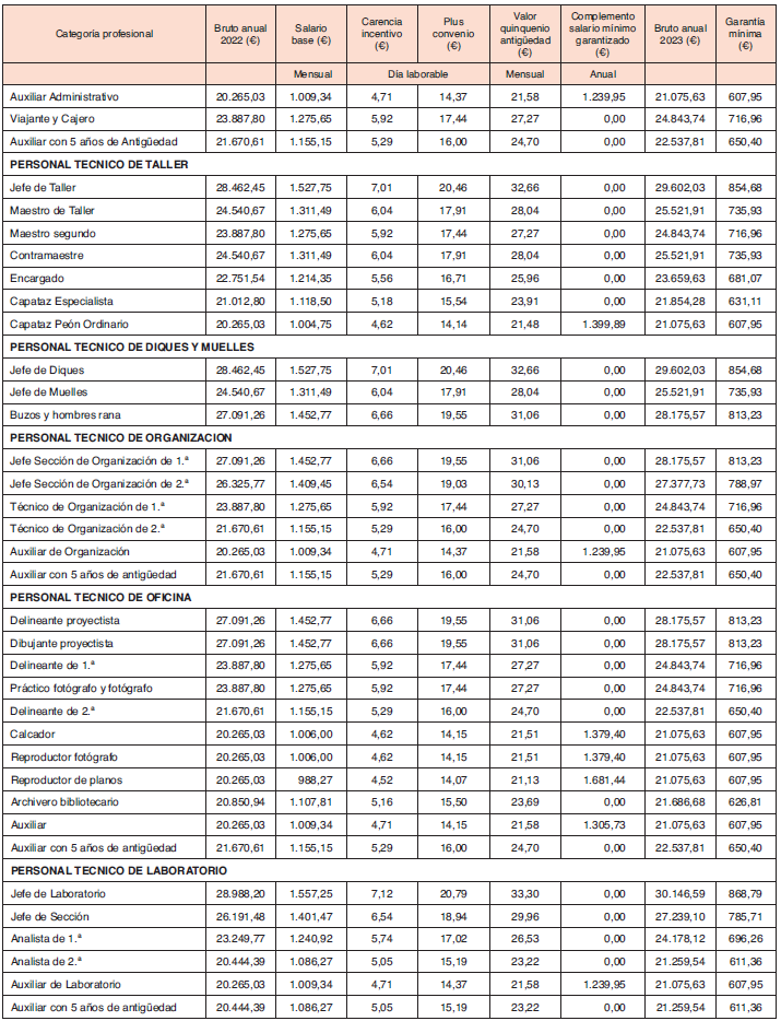 TABLAS SALARIALES 2023 (4% SOBRE 2022).