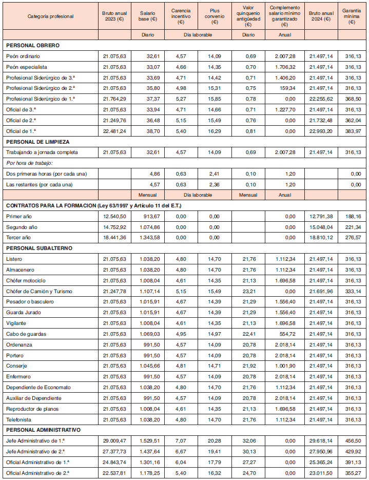TABLAS SALARIALES 2024 (2% SOBRE 2023).