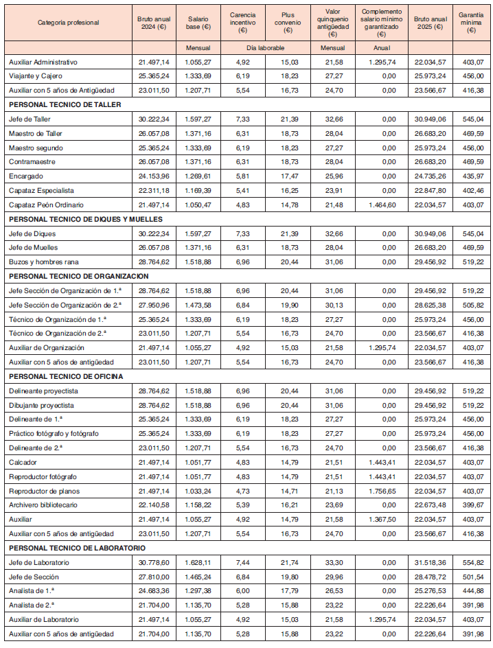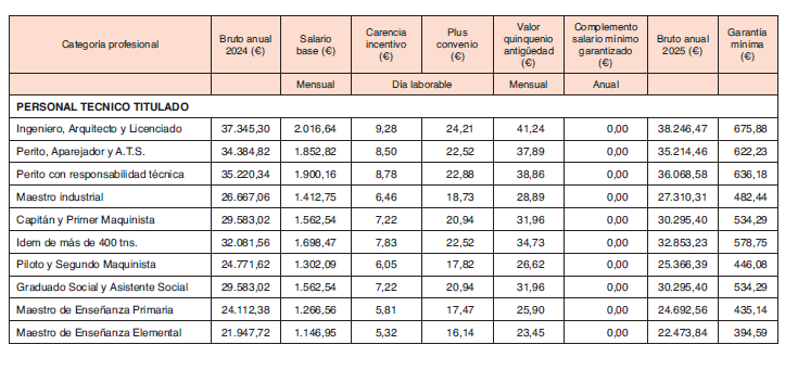 – Incremento salarial 2025: Subida fija del 2,5% sobre las tablas salariales de 2024 con efectos desde el 1 de enero de 2025.