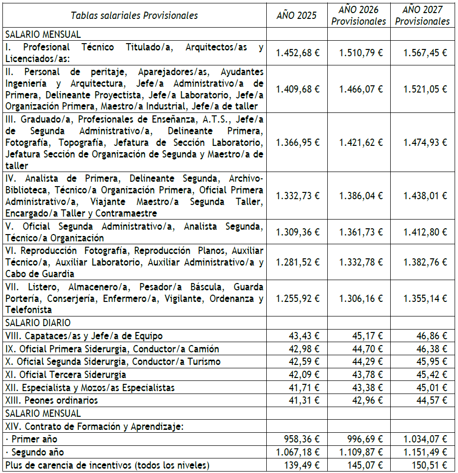 -2025: si el IPC del año 2025 supera el 3,5% se incrementarán las tablas salariales del año 2026 en el exceso hasta el 1%.