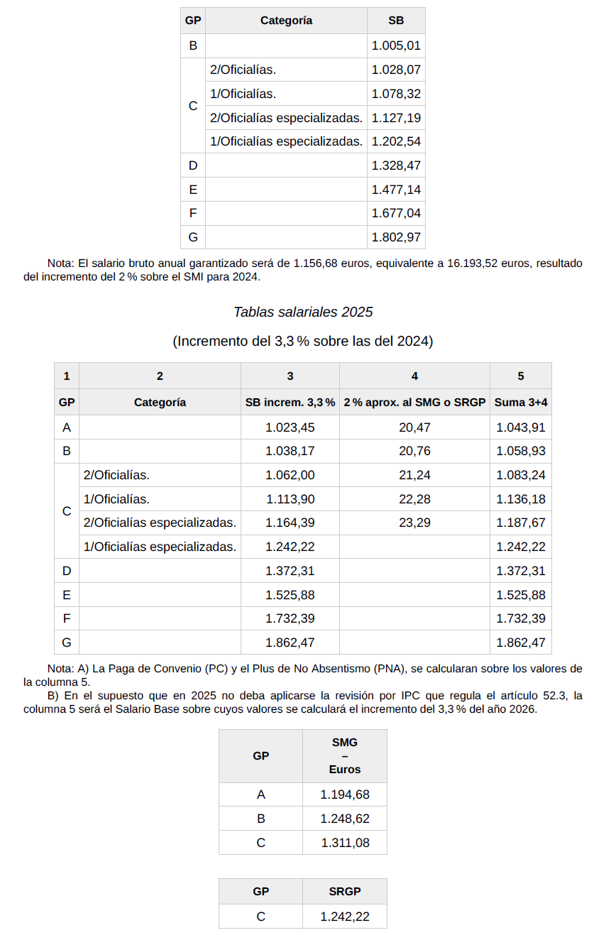 Las tablas salariales de 2024 y 2025 se retrotraerán a 1 de enero de los respectivos años.