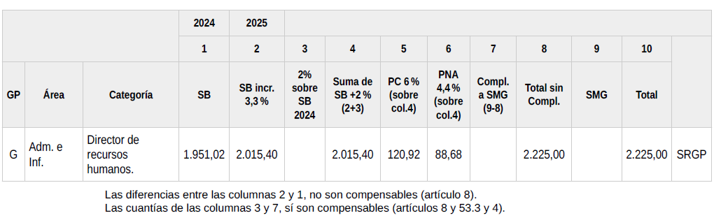 De los cuatro conceptos retributivos que figuran, el Salario Base se percibirá para todos los días del año, incluidas gratificaciones extraordinarias y servirá de base para el cálculo de todos los conceptos retributivos, incluidos los incentivos.