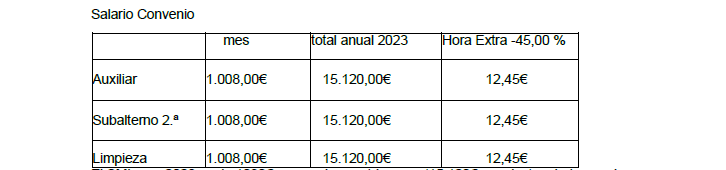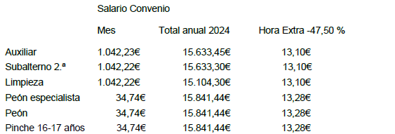 Con la actualización del SMI ANUAL el salario de dichas categorías quedaría: