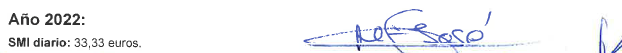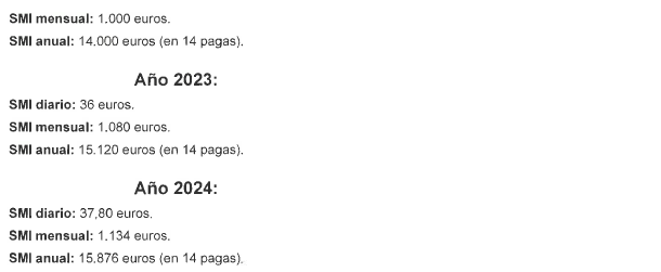 Para cada uno de los años de vigencia del convenio (2022, 2023 y 2024), ninguna persona trabajadora podrá percibir, por el total de los conceptos retributivos, una cantidad inferior al Salario Mínimo Interprofesional (SMI) vigente en el año correspondiente (En caso de periodo o jornada inferiores a la completa, se aplicará la parte proporcional):