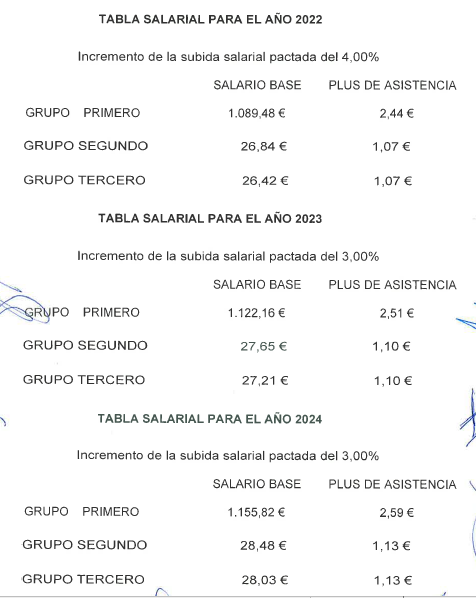 Igualmente durante el periodo ultraactivo hasta la firma del nuevo Convenio Colectivo, se deberá respetar el SMI vigente, así pues para el año 2025: SMI diario: 39,47 euros. SMI mensual: 1.184 euros. SMI anual: 16.576 euros (en 14 pagas).