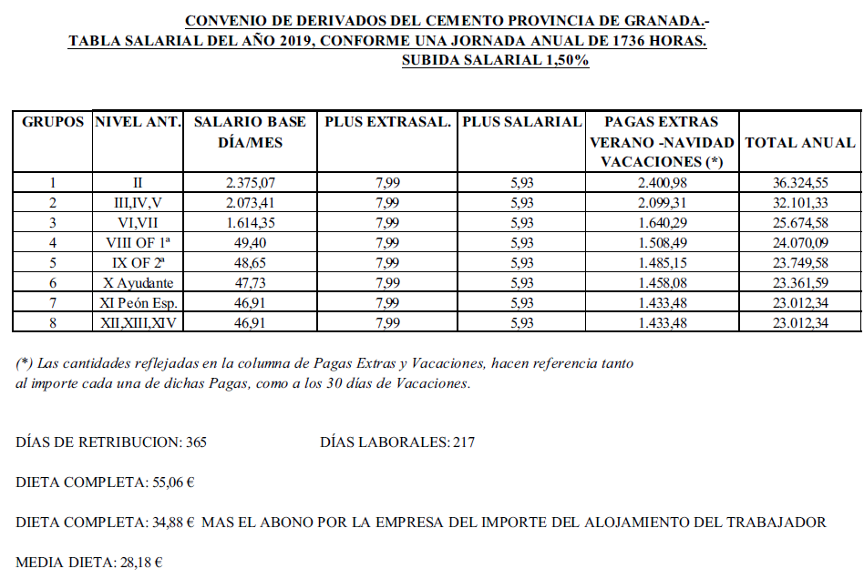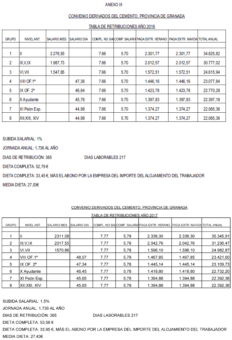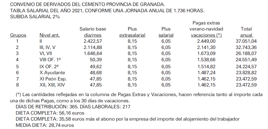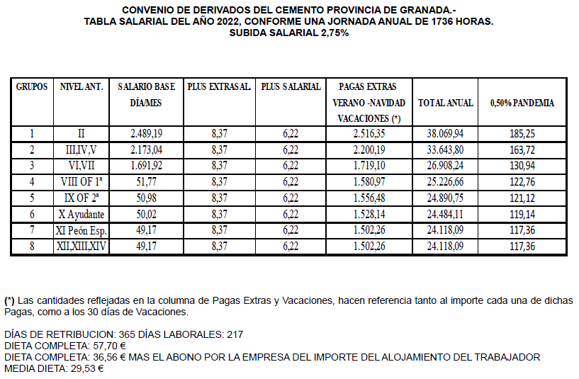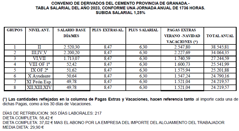 SECTOR DE DERIVADOS DEL CEMENTO, PARA GRANADA Y SU PROVINCIA, fe de erratas TABLAS SALARIALES 2022 Y 2023 Y CALENDARIO LABORAL AÑO 2025 SECTOR DE DERIVADOS DEL CEMENTO, PARA GRANADA Y SU PROVINCIA, fe de erratas TABLAS SALARIALES 2022 Y 2023 Y CALENDARIO LABORAL AÑO 2025.