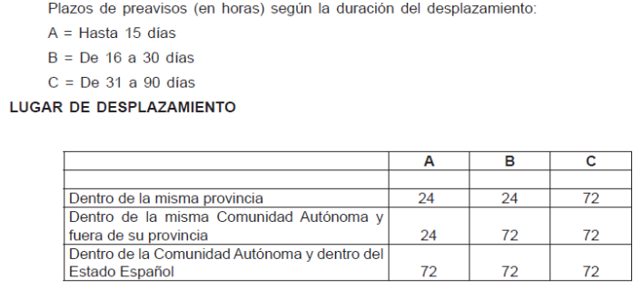 En cualquier caso, los preavisos deberán realizarse por escrito en caso de desplazamientos superiores a 15 días.