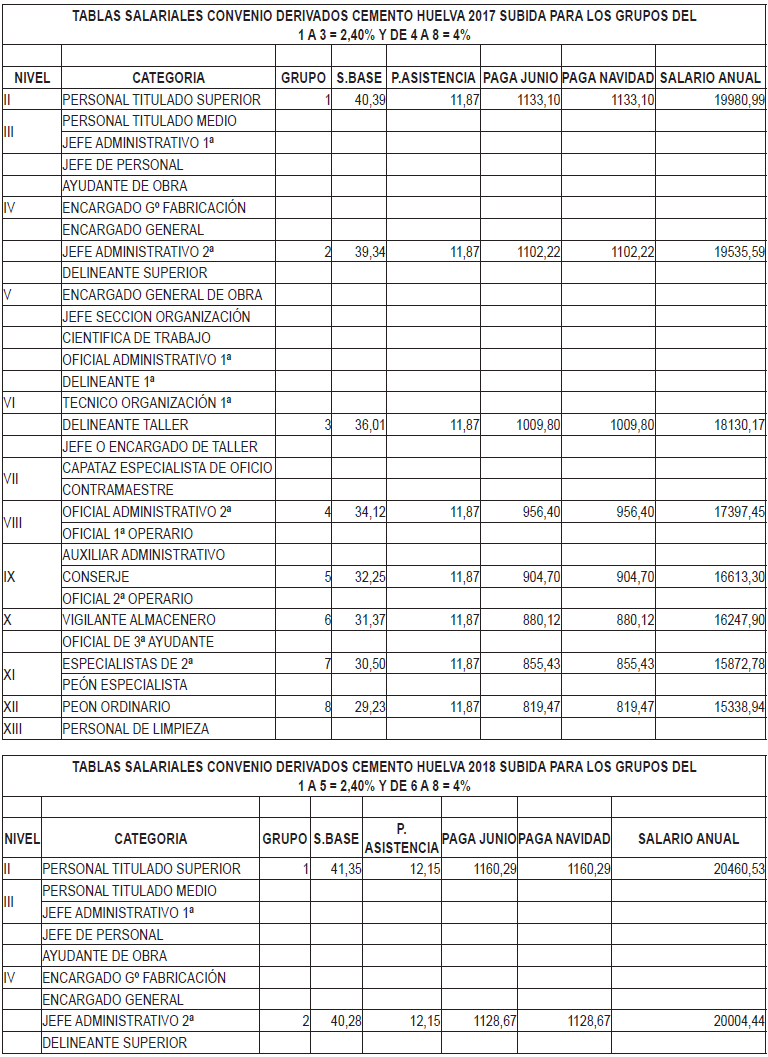 CONVENIO COLECTIVO PARA LAS INDUSTRIAS DE DERIVADOS DEL CEMENTO DE LA PROVINCIA DE HUELVA (2017-2020).