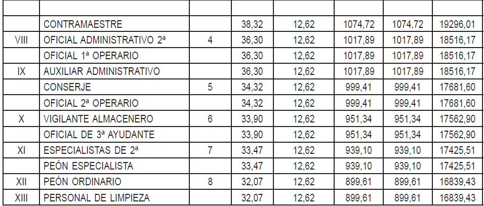 VIII.- Oficial Administrativo de 2ª, Corredor de Plaza, Oficial 1ª de Oficio, Inspector de Control, Señalizador y Servicios, Analista de 2ª.