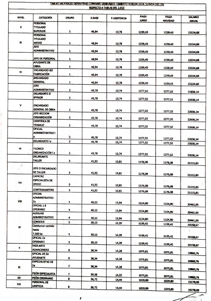 TERCERO: Solicitar la publicación de la tabla salarial en el Boletín Oficial de la Provincia de Huelva, para conocimiento y cumplimiento por las partes afectadas.