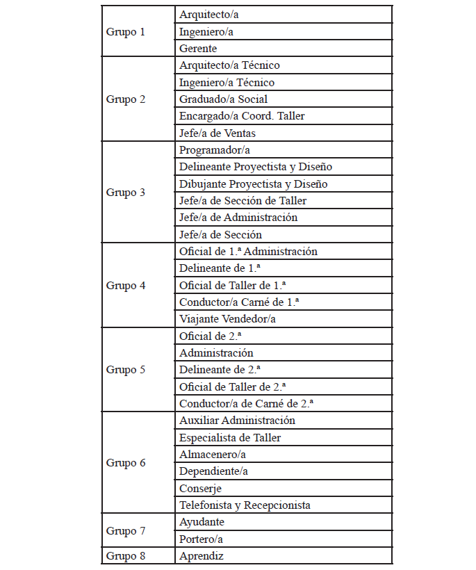 TABLA DE GRUPOS PROFESIONALES.