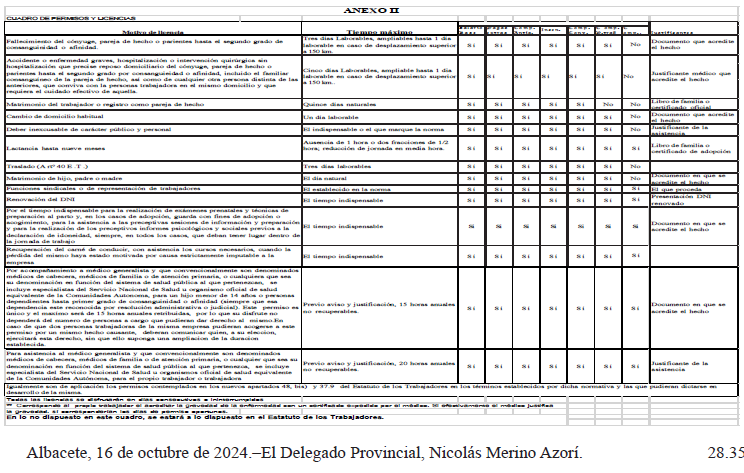 ANEXO II.- CUADRO DE PERMISOS Y LICENCIAS.