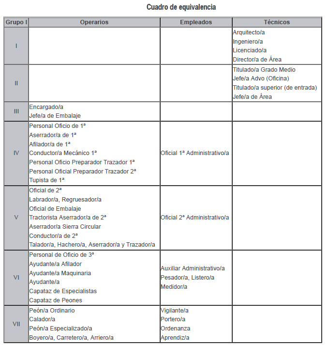 De acuerdo con lo establecido en el artículo 40 del IV Convenio Estatal de la Madera, se relacionan a continuación los siguientes criterios generales: