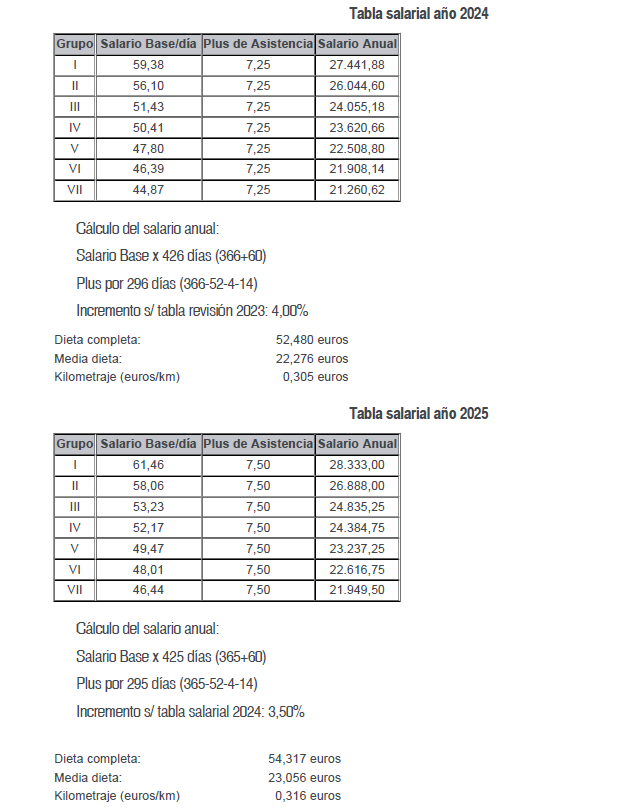 Para el año 2025, el incremento salarial será el producto de incrementar a la tabla salarial de 2024 el 3,50%.