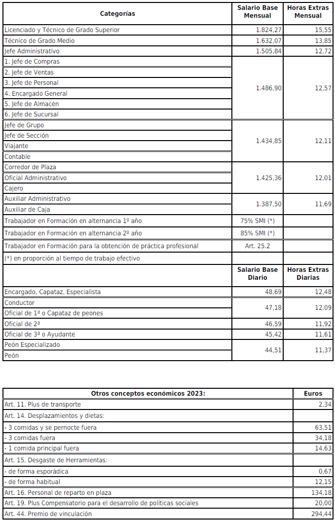 ANEXO II.- Tabla de Salarios y Horas Extras Año 2023.